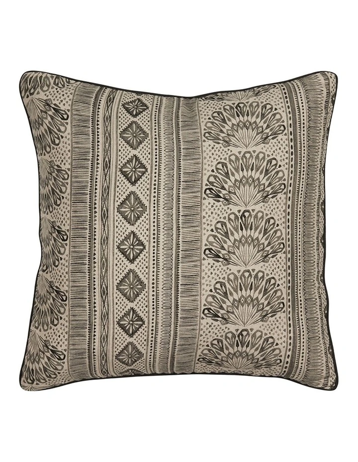 One side digital print on natural linen with plain natural linen reverse and piping. Concealed zip.