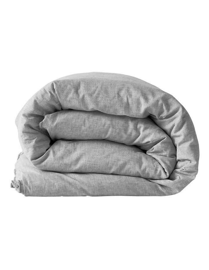 Aura’s luxurious, linen cotton chambray bedlinen is designed for a contemporary, relaxed look. Flanked by delectably soft, frayed edges, it has been woven in modern shades of dove and white and pre-washed to achieve its tactile, vintage charm.