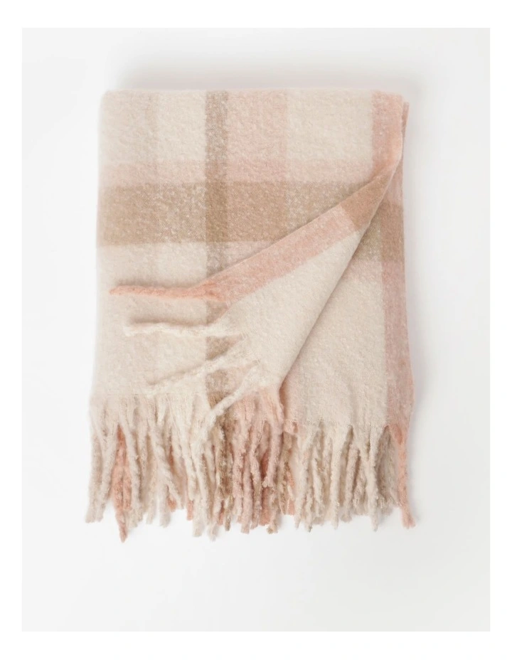 Vue Check Faux Mohair Throw 130×180 cm in Sand