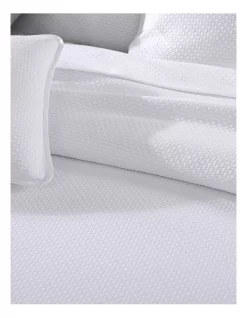 Private Collection’s Cornell brings beautiful texture to the bedroom with it’s white-on-white embossed basketweave pattern. Simple, yet sophisticated, the rounded edges are tailored with cotton sateen binding.