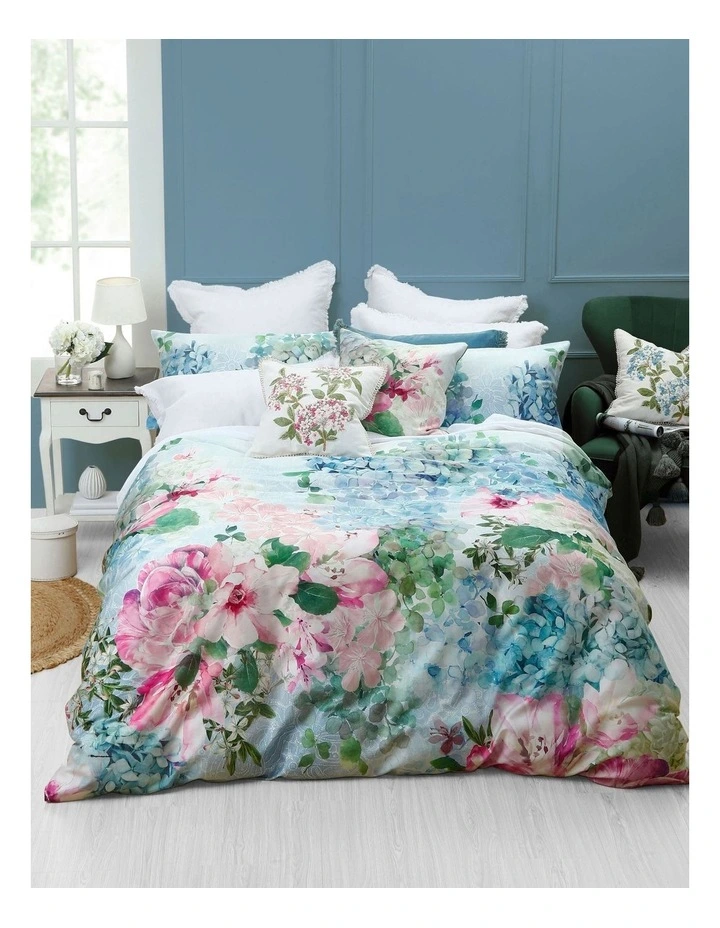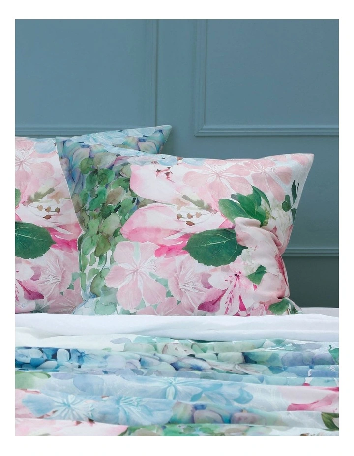 The design is printed across a luxe cotton sateen with a lovely hand-feel, and begs to be adorned with its coordinating European pillowcases and cushion.