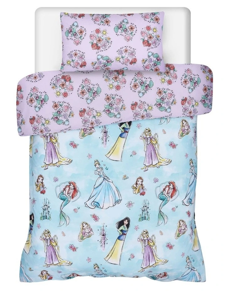 Transform your little one’s bedroom into a room fit for a princess with the Disney Princess Quilt Cover Set. Made from 100% Cotton, this quilt cover set is breathable and soft to touch. Featuring an exclusive Disney Princess design, it is fully reversible. It is machine washable, and comes in Single Bed and Double Bed sizes.