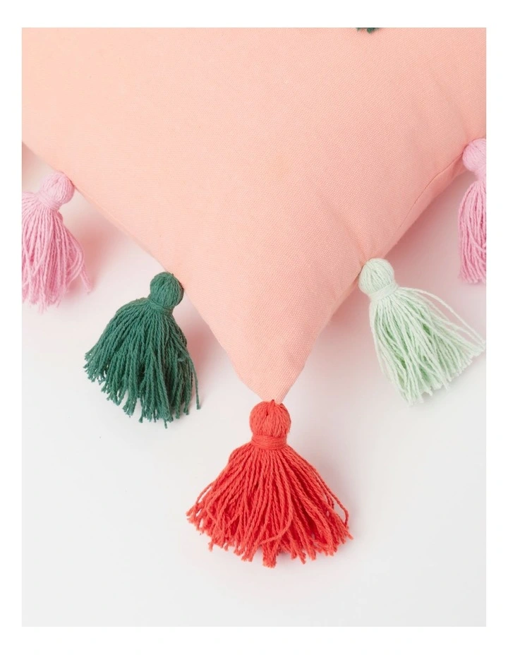Beau & Bonnie Hot Stuff Tufted Cotton Cushion w/ Tassel in Pink: 50x50cm