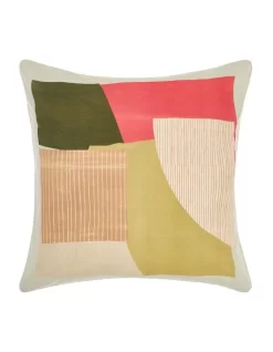 With its painterly, hand-cut textures in a scarf-like composition as well as an earthy palette with pops of coral, this textured cotton slub print will renew your boudoir.