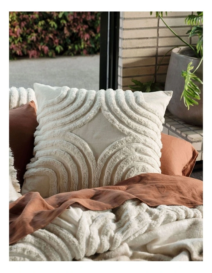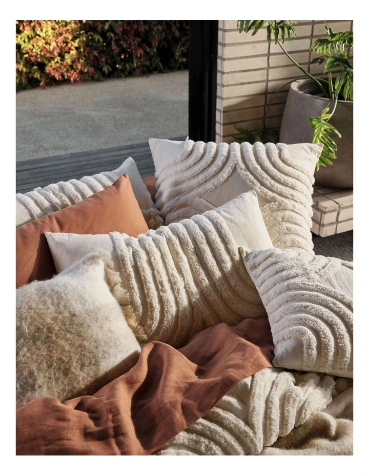 Your retro dream in an ever-inviting, neutral vanilla hue, this beautifully soft, cotton chenille ensemble offers both structure and texture this winter. Pair Farrah with its coordinating European pillowcases and cushion for a blissful bedroom centre piece.