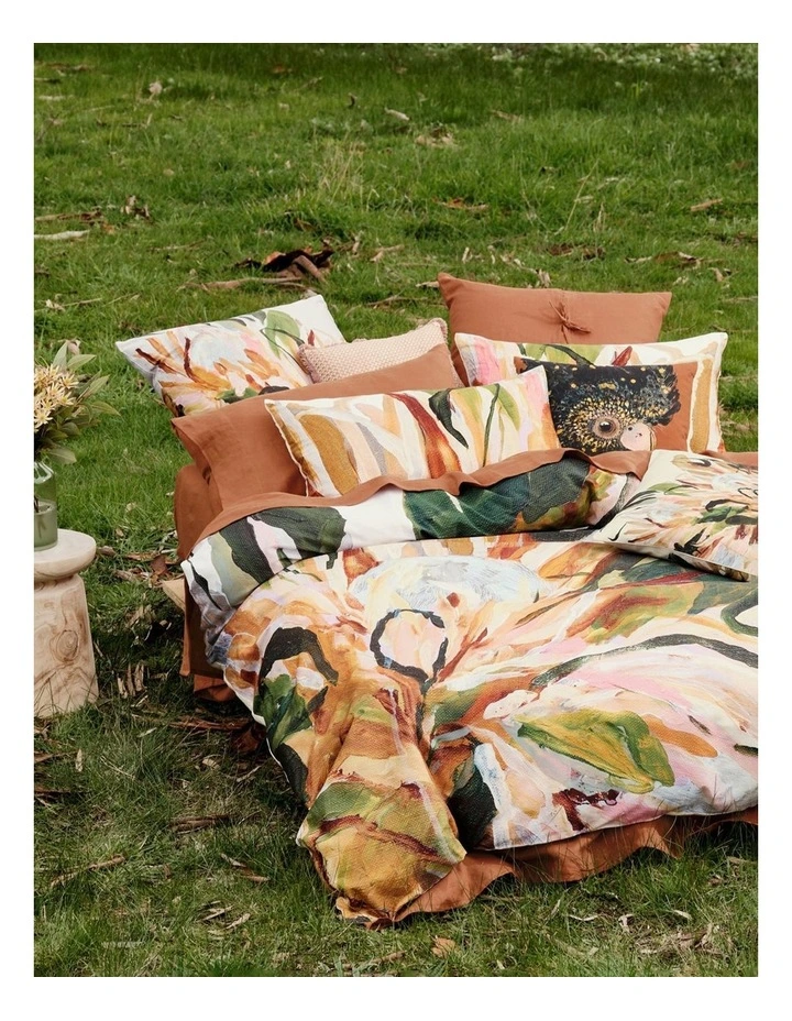 Based on the notion that energy is interchangeable and has its own synchronicity, this thoughtfully painted artwork of dried protea is printed on a luxe cotton sateen ground, allowing every earthy detail to be relished.