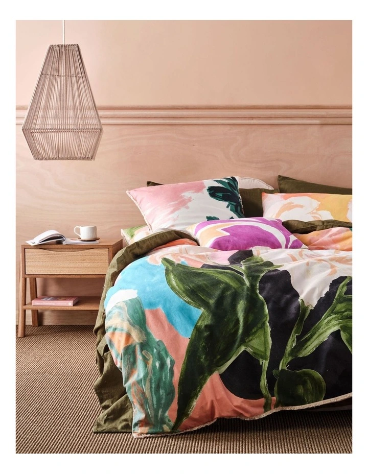 This season’s hottest fashion print is for the brave and bold, with its stunning tribute to expressive matters of the past in a modern-day palette. Sanchez is printed on textured cotton, giving it a luxe feel. Trimmed with cotton fringing, this set feels even more thrilling paired with coordinating European pillowcases and cushion as well as a mix of earthy and bright accessories.Â