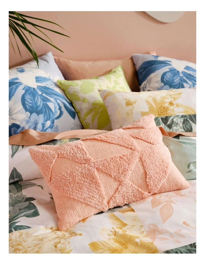 A chic, geometric design in a fresh apricot hue, this tufted cotton cushion complements its coordinating quilt cover set, European pillowcases and cushion, giving the whole aesthetic some lovely texture.