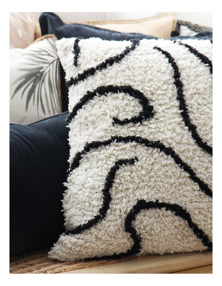 Modern abstract linework paired with shearling and velvet textures feature in our new Modern Classics range. Our Mona Tufted Cushion features a black linework design on an off white base. It is finished with a plain off white reverse and zip closure.