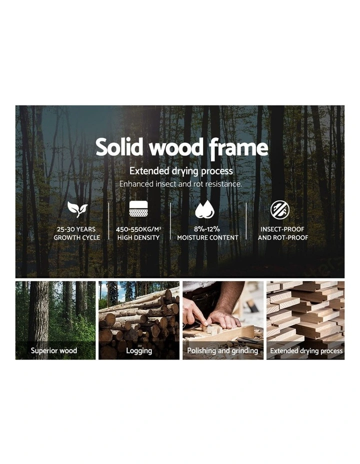 Constructed with a sturdy steel frame that’s reinforced with metal bars and heavy-duty connectors, the Mila Bed Frame is also padded with high density foam and upholstered in breathable non-woven premium linen fabric for a soft and comfortable touch. The Bed Frame features a wooden arched slat base that helps to distribute weight evenly across the frame and a centre support strut to provide added stability to the overall structure.