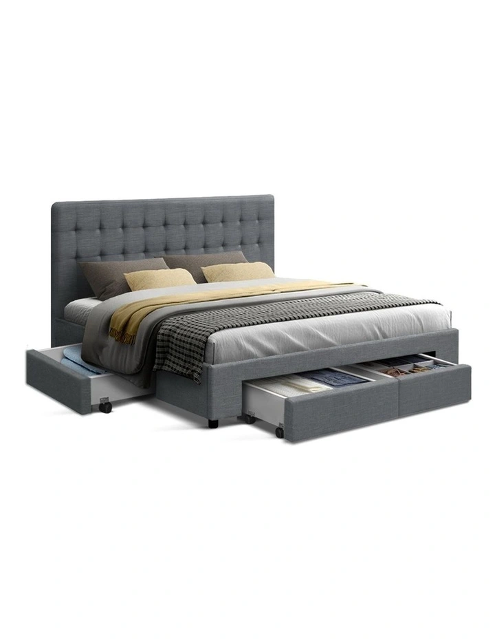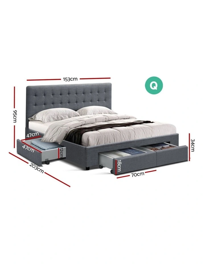 Of particular interest is the tufted headboard that really gives the Bed Frame a designer-class status. Simply oozing with elegance and sophistication in every detail. What’smore, underneath the Bed Frame, you’ll find four spacious drawers to store all your seasonal beddings and linen and a host of other personal essentials. No more clutter and loads of useable storage right under you. Better still, the drawers are set on wheels for easy access sliding in and out.