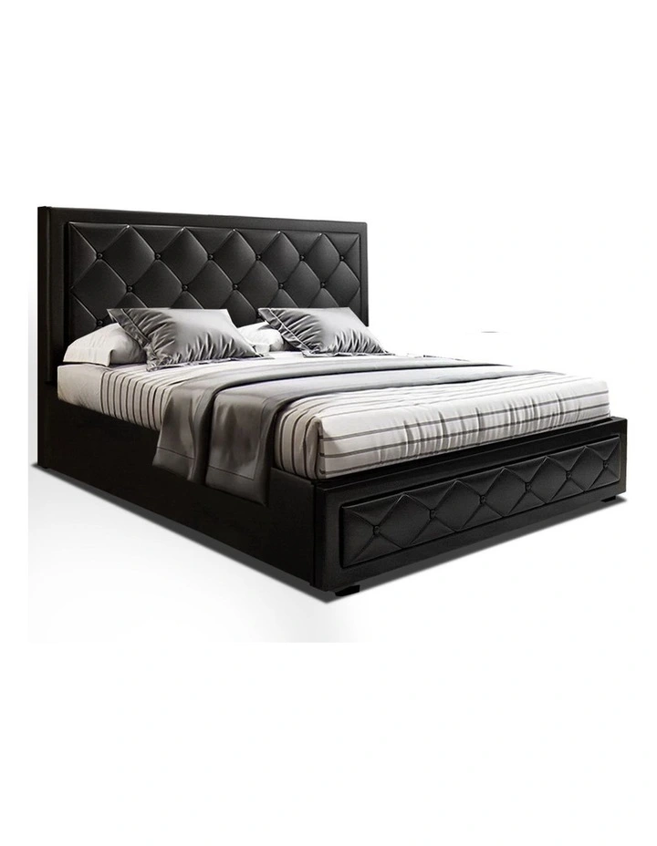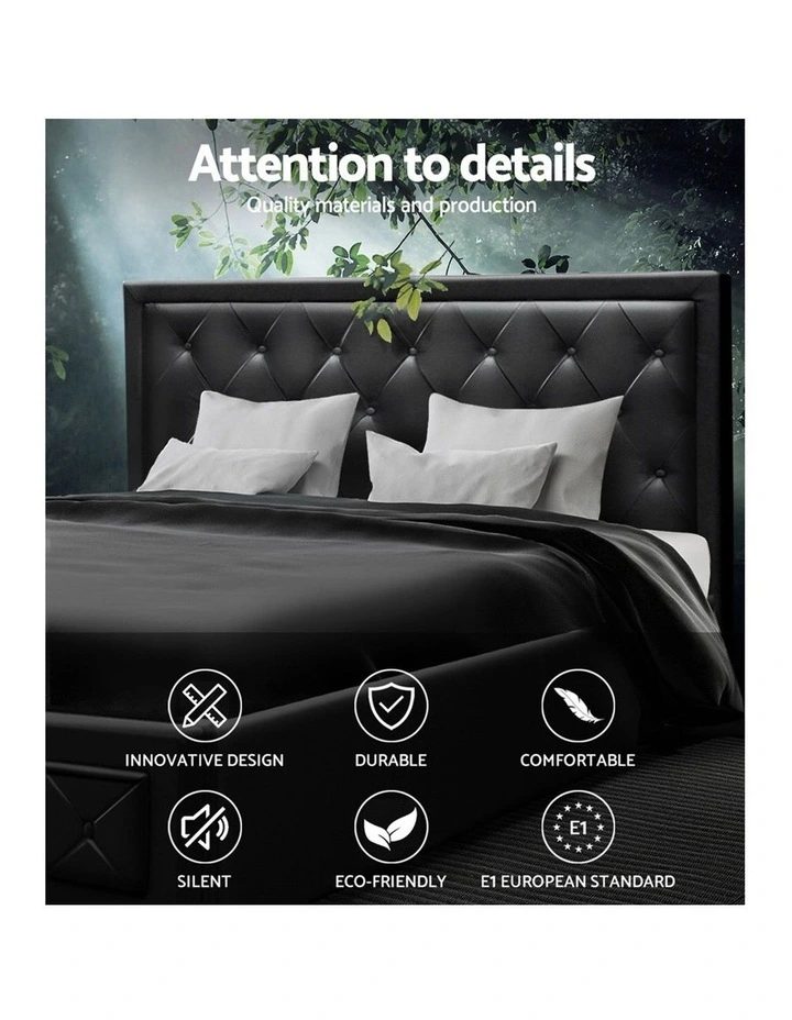 From the outside, our contemporary Artiss Tiyo Gas Lift Bed Frame looks absolutely plush. The premium PVC leather tufted headboard and sides all exudes fine craftsmanship. But there is more to this luxurious bed frame than meets the eye. Lift up the frame and you will find acres of storage space under the wooden arched slat base. The gas lift system and hand strap enable you to effortlessly lift the bed to store all your seasonal beddings and linen such as extra quilts, pillows and comforters and more. The wooden arched slat base is also designed to flex appropriately so that it can better distribute the weight exerted on it. Overall, the bed frame is well-built with reinforced steel bars within its sturdy steel frame. Heavy-duty metal connectors keep the frame sturdy with additional central support from an adjustable centre support beam. Enjoy your wonderful sleep in more ways than one with our innovative Tiyo Gas Lift Bed Frame.