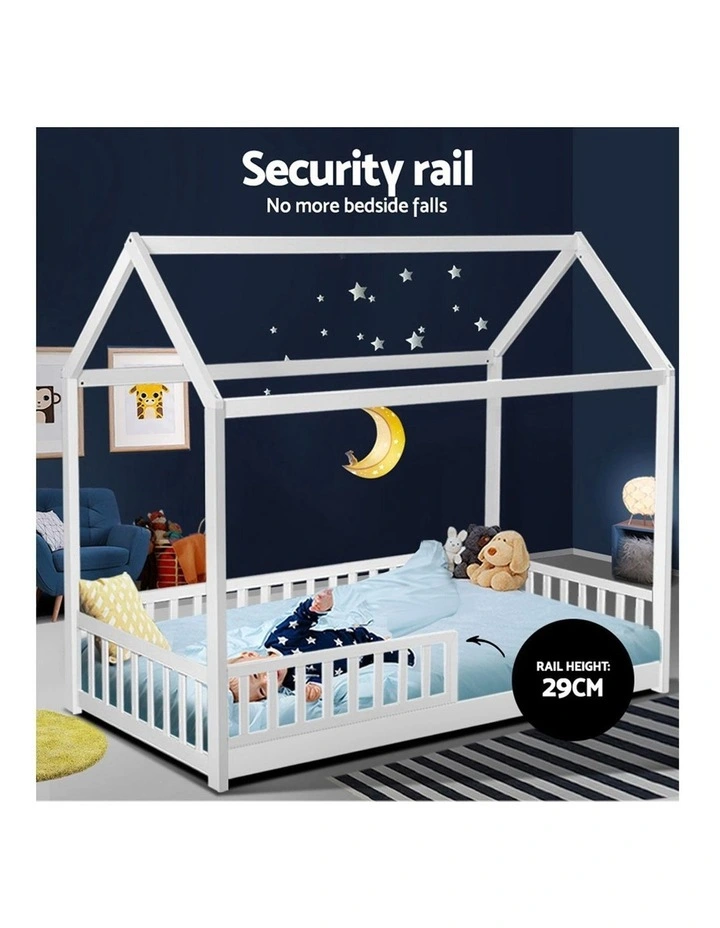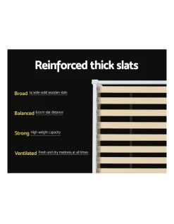 Strong and sturdy, the Bed Frame comes with a durable plywood slated base, reinforced angled brackets for long term support, stylish headboard, heavy-duty steel fixings and smooth edges all round. Finished in a non-toxic, eco-friendly white paint, the neutral-coloured Bed Frame makes for easy décor coordination with any bedroom.